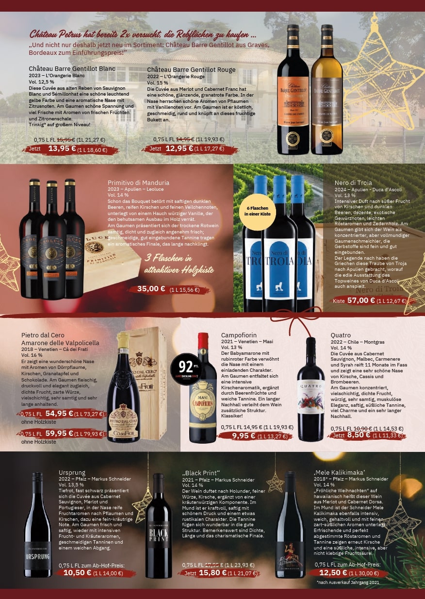 Wir versenden bundesweit unsere Weine zu Ihren Bestimmungsorten. Sie kennen bereits einen bestimmten Wein und möchten diesen Ihren Freunden, Verwandten oder Geschäftspartnern zukommen lassen? Wir übernehmen das für Sie.