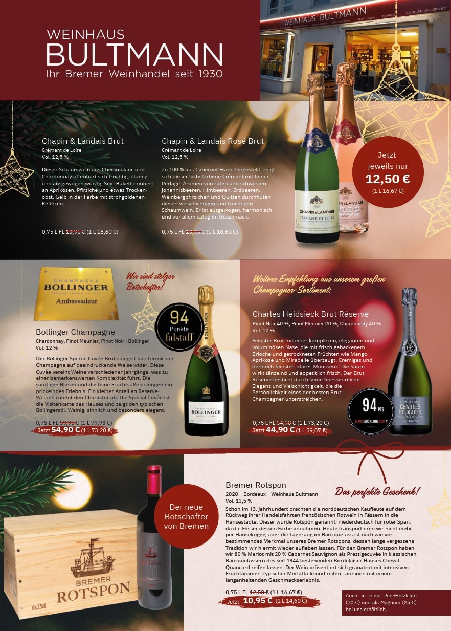 Lieferung innerhalb Bremens ab 12 Flaschen